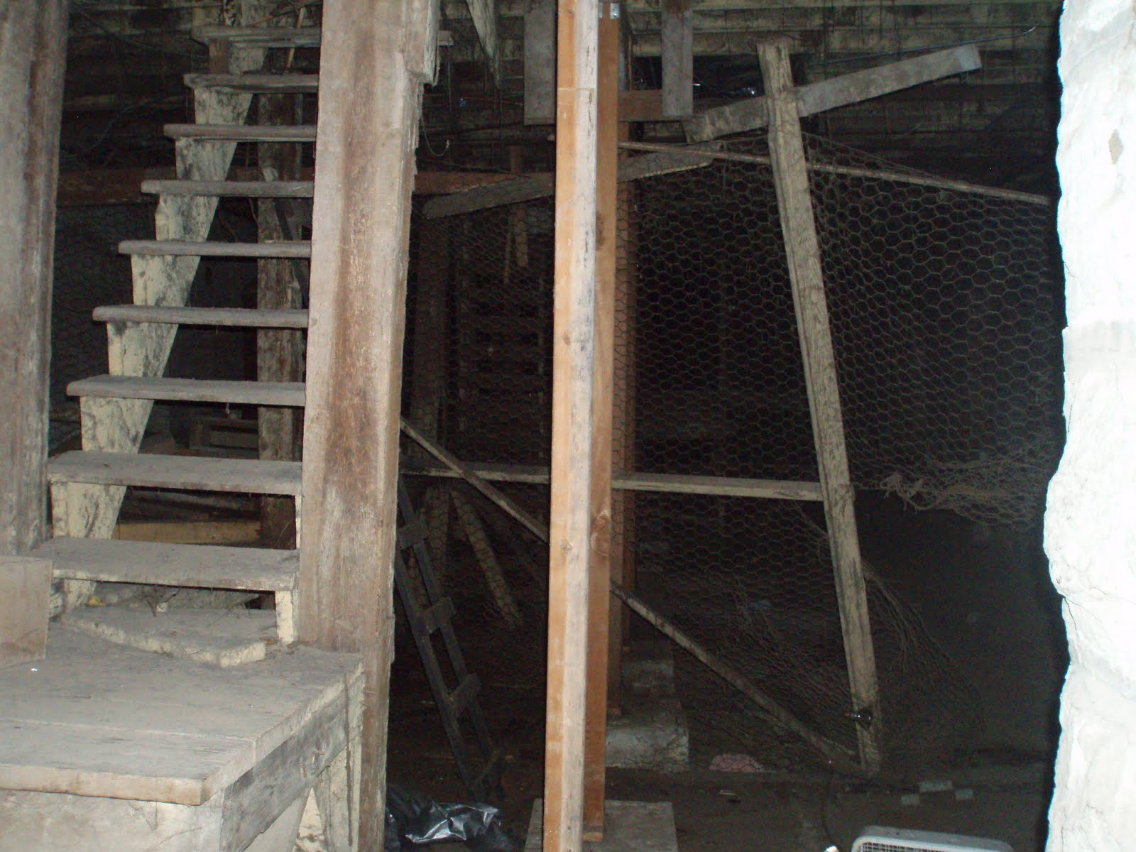 The story goes that the first pioneers to settle in Seattle set up camp on tidal flats (obviously when the tide was out). The city developed while every day this tide came in and swamped the streets. It was some time before anything was done about it and it took a large fire to get the city organised. The city of Seattle finally decided it would shift the dirt from the hills above down onto the tidal flats below, raising the street level between 10 and 30ft at some points. Once this decision was made it then took the city a few more years to get the project underway and the store owners were getting antsy - they opened up their stores at the original level and carried on with business. Years later the streets were raised, but the stores' doors and the footpaths were still down at the original level. Solution: ladders at every corner.